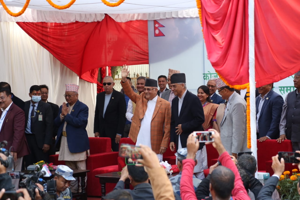 Former Prime Minister and UML chair KP Sharma Oli, senior vice chair Ishwor Pokhrel, vice chair Bishnu Poudel, leaders Pradeep Gyawali, Raghuji Pant, Chhabilal Bishwakarma and Bishnu Rimal visited Sanepa to join the reception.