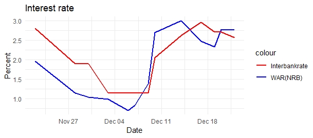 However, NRB started moping of liquidity through deposit collection and a fall in liquidity inducing the inter-bank interest to move upward.