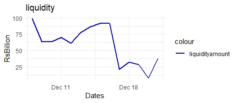 The surplus liquidity fell to Rs 32.98 billion as of December 22.