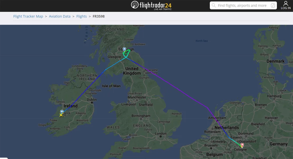 This flight from Shannon to Edinburgh ended up in Cologne. FlightRadar