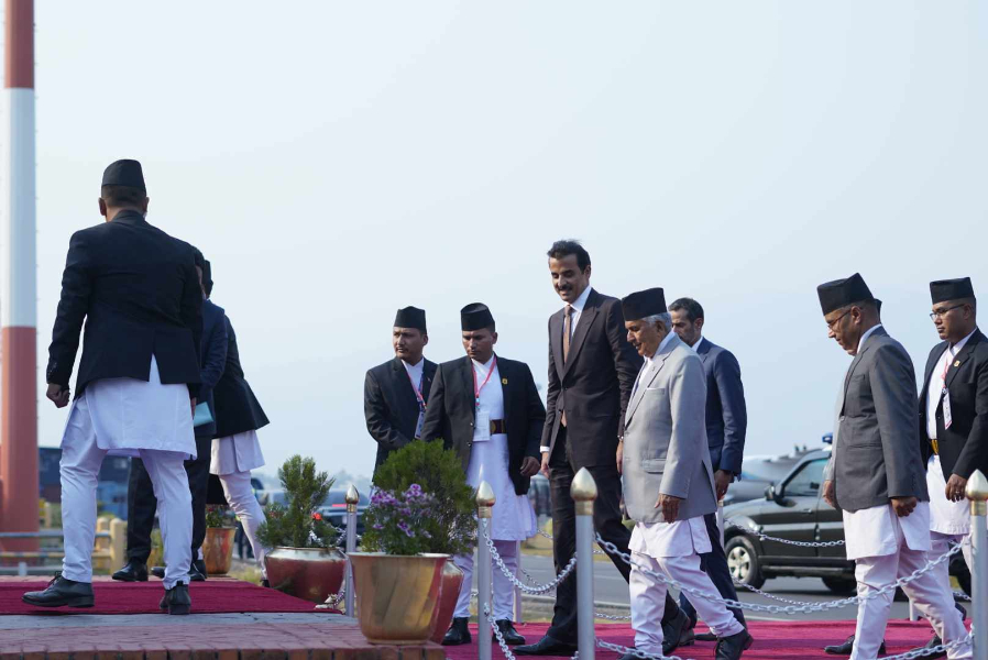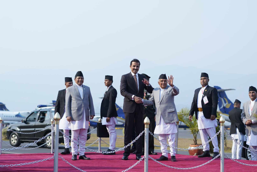 The Qatari Emir is on a two-day state visit in Nepal at the invitation of President Ramchandra Paudel.