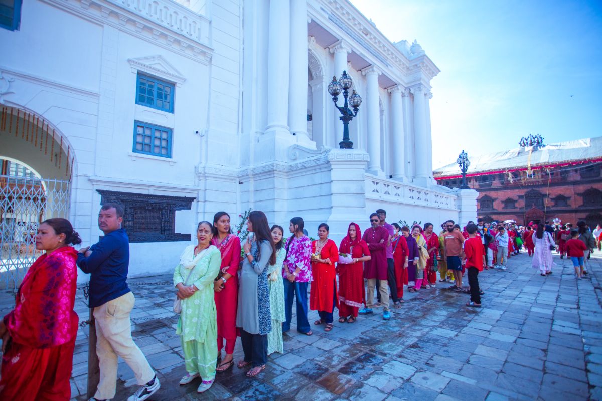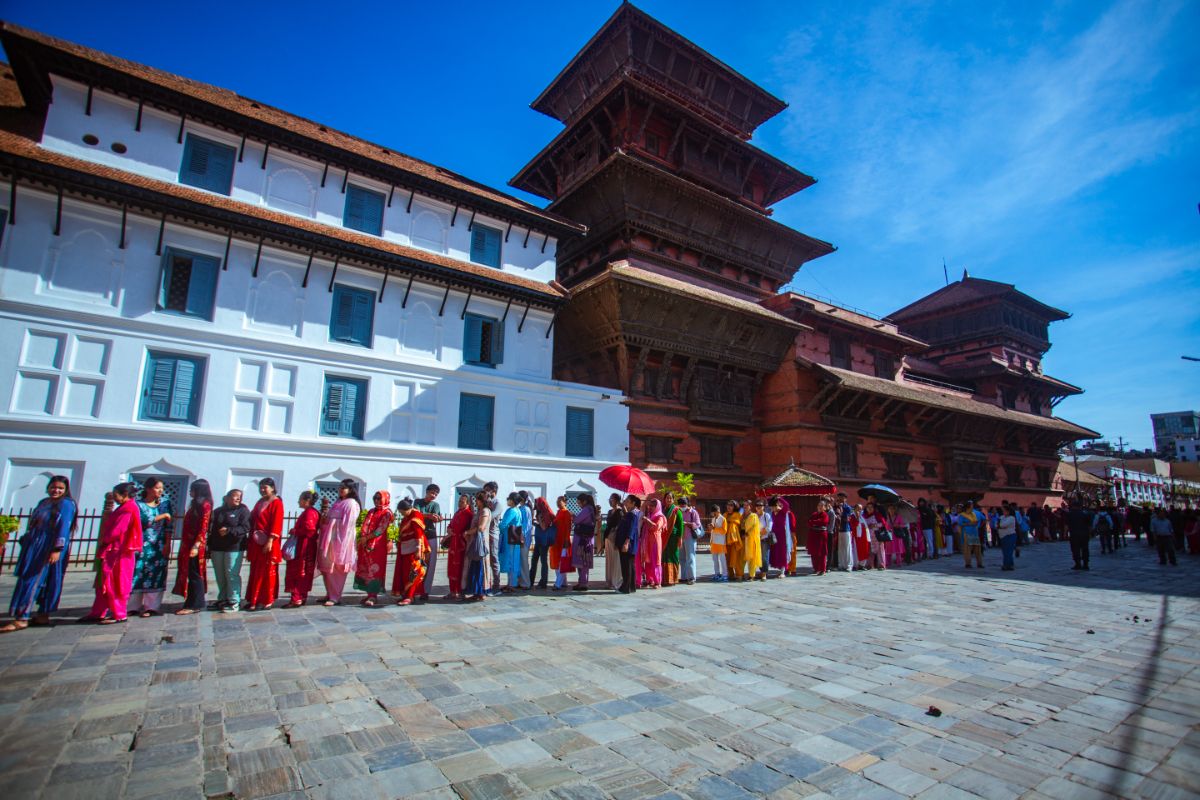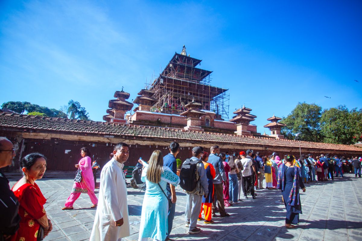 By TRN Online, Kathmandu, Oct.1: A view of devotees flocking to the Taleju Temple in Basantapur, Kathmandu, on the day of Mahanavami today.