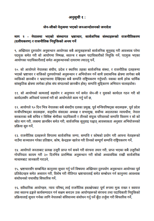 Other demands included in the memorandum are investigation into the CIAA commissioners themselves, appointing CIAA commissioners in a transparent manner, forming a Gen Z team to facilitate CIAA works, investigating all other corruption related cases, and formulating laws to cover policy corruption.
