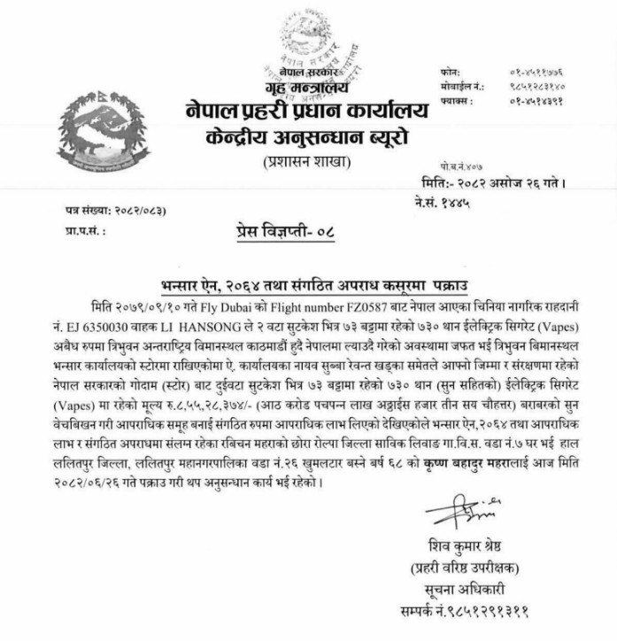 The Central Investigation Bureau (CIB) on Sunday arrested Mahara in connection to gold smuggling case.