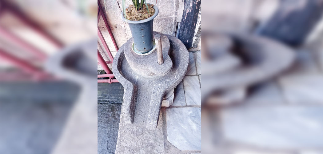 A flower pot, not Shiva Linga is seen standing on a stone in a courtyard of Dali, China.