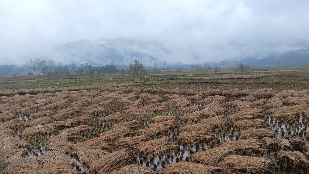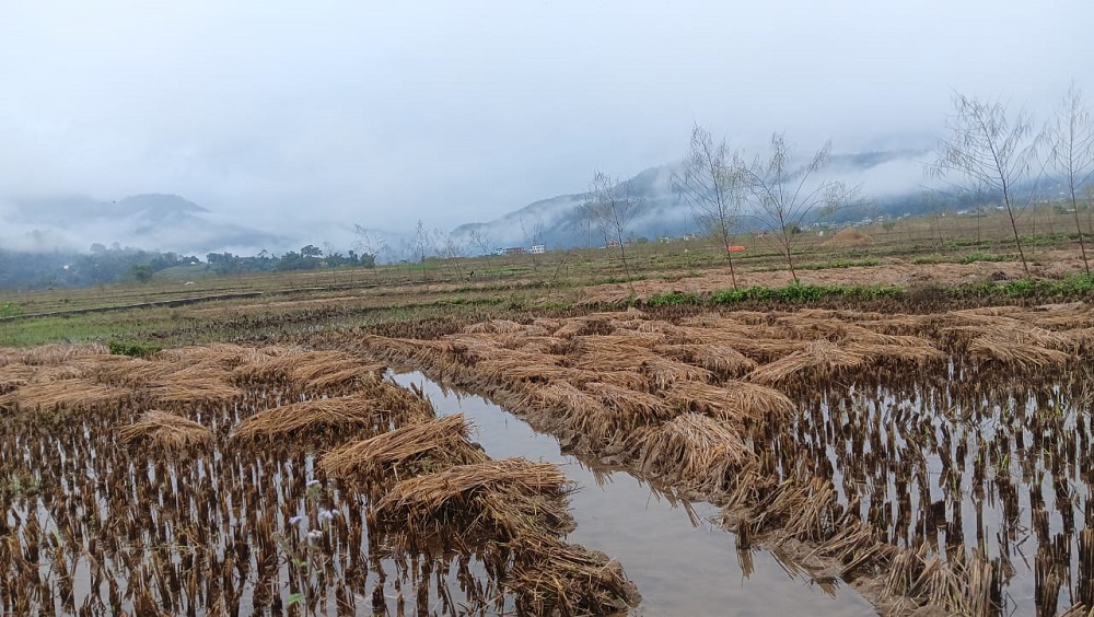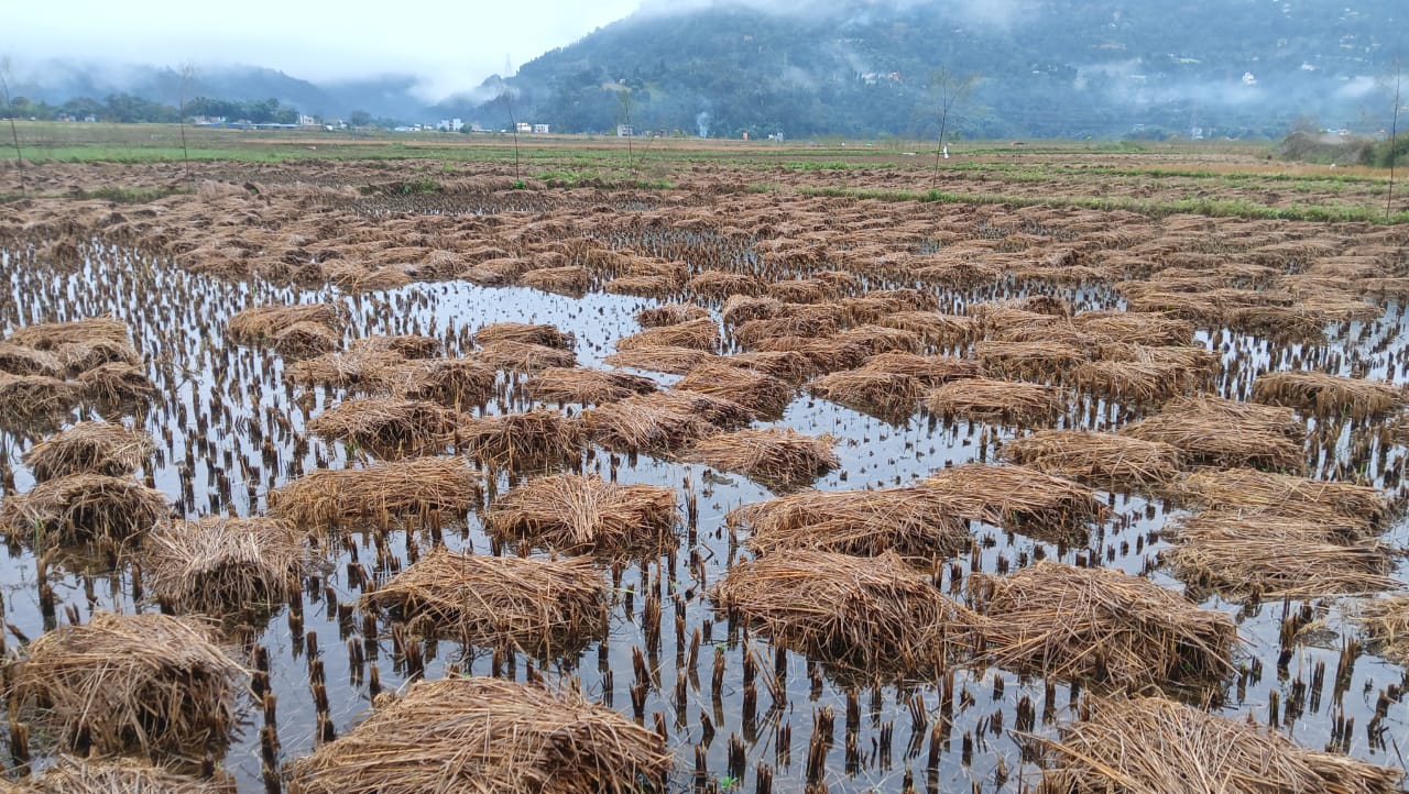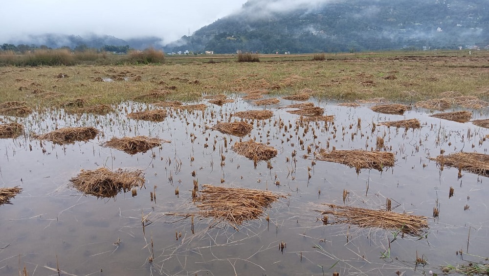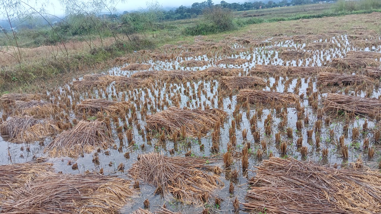 After continuous rain since Thursday morning, the paddy harvested by farmers in Rampur, Madi, Kachal, Argali, Purbakhola, Gejha, Jhadeva, Tinau, Sardewa, and Galdhaphant in Palpa has become wet.