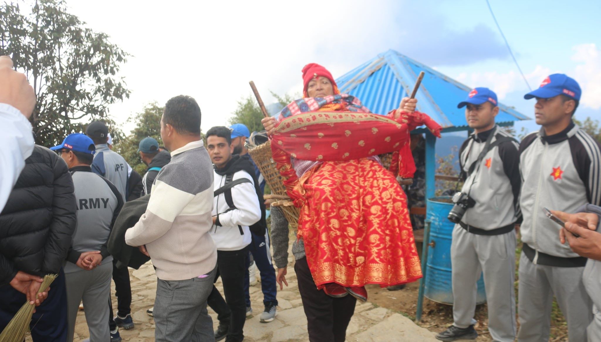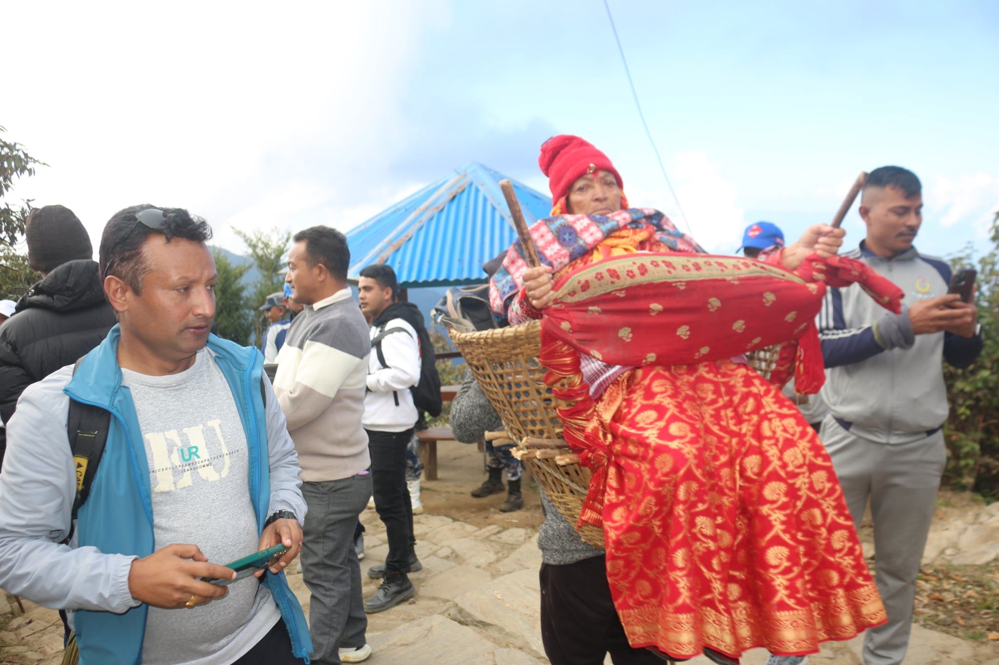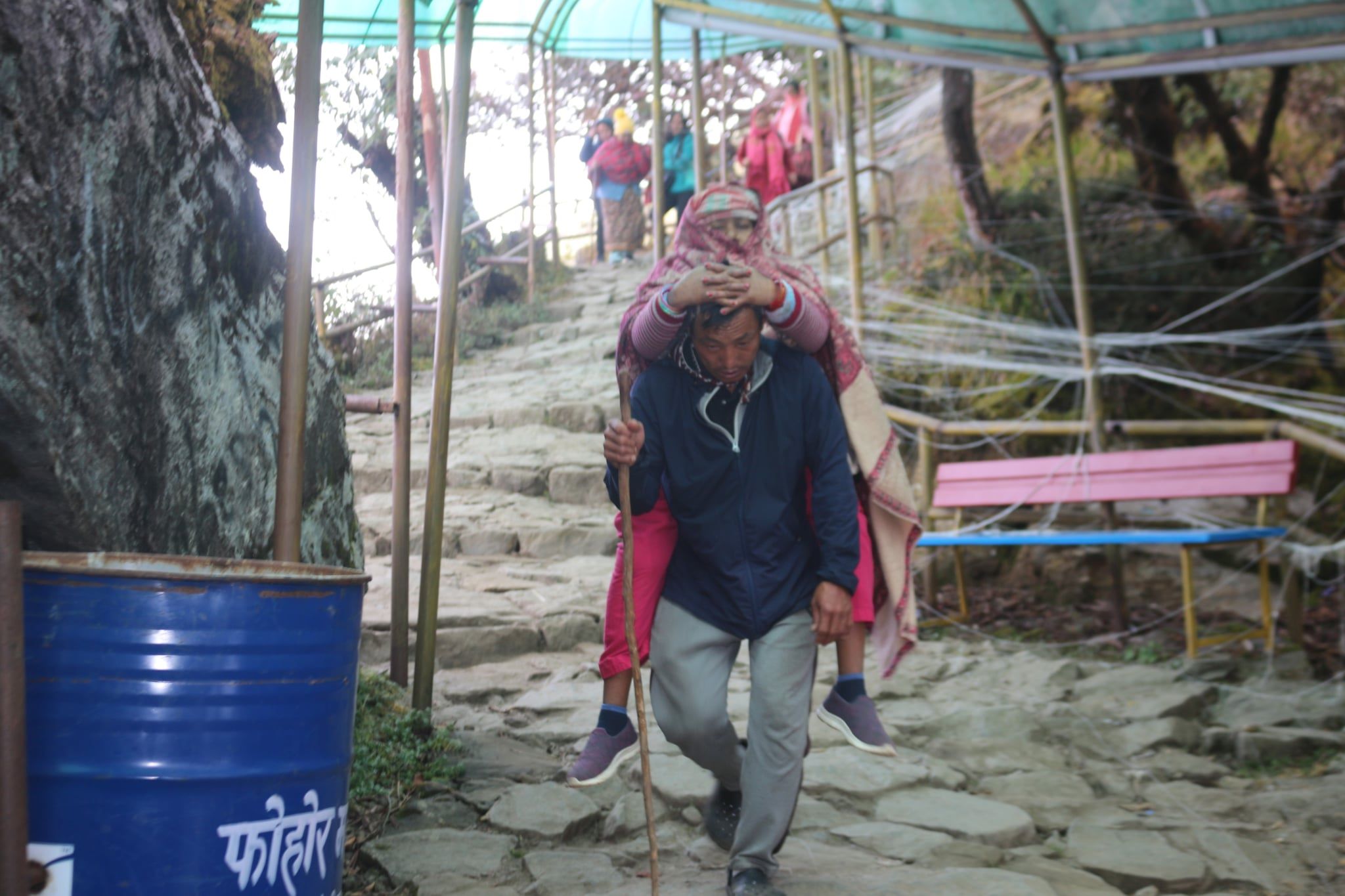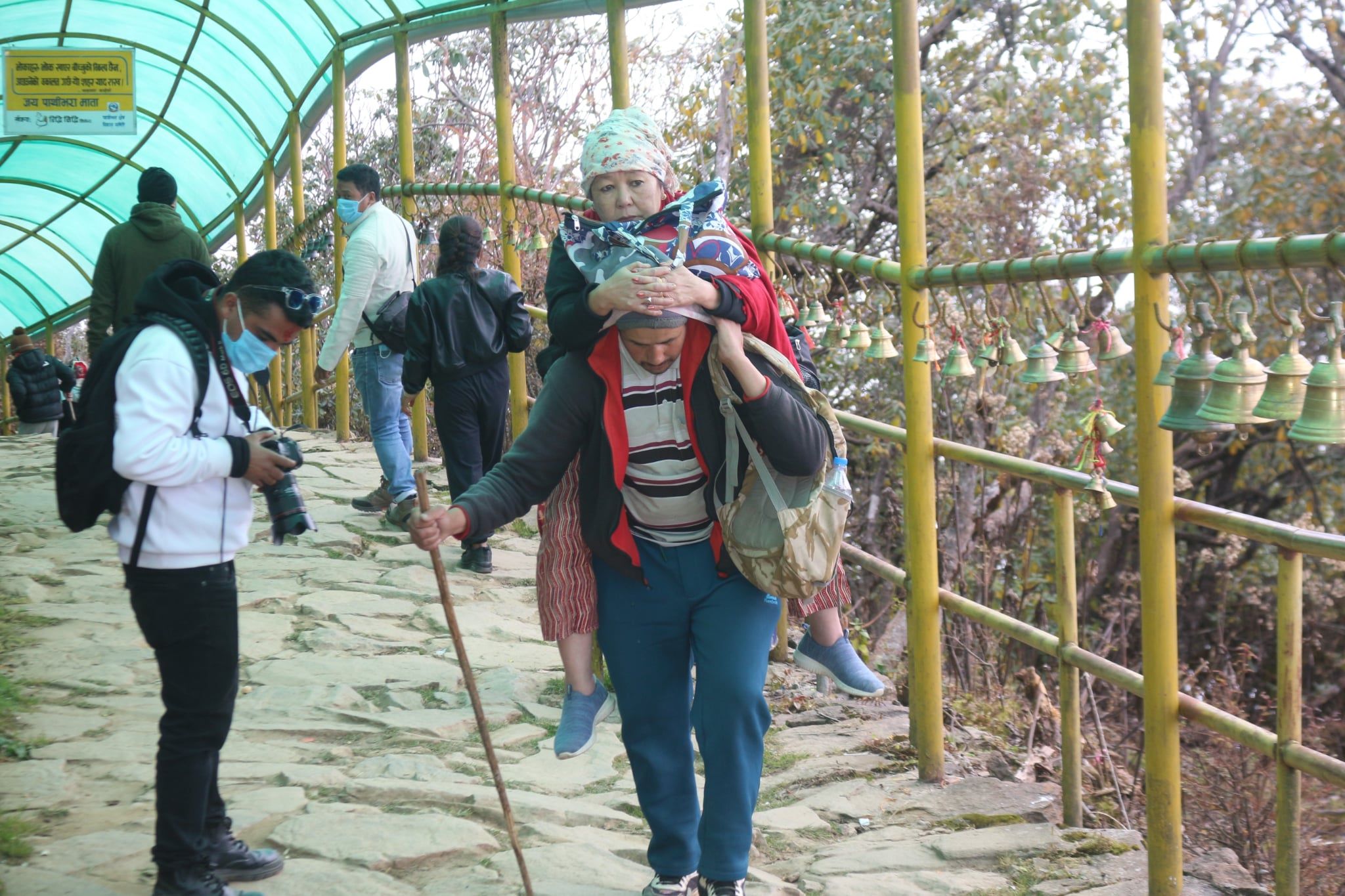 By Sahara Limbu, Phungling, Nov.1: Pathibhara Temple, a famous pilgrimage site in Taplejung, has a system in place to carry visitors who are unable to walk to the temple. Porters carry visitors who are unable to walk to the temple.