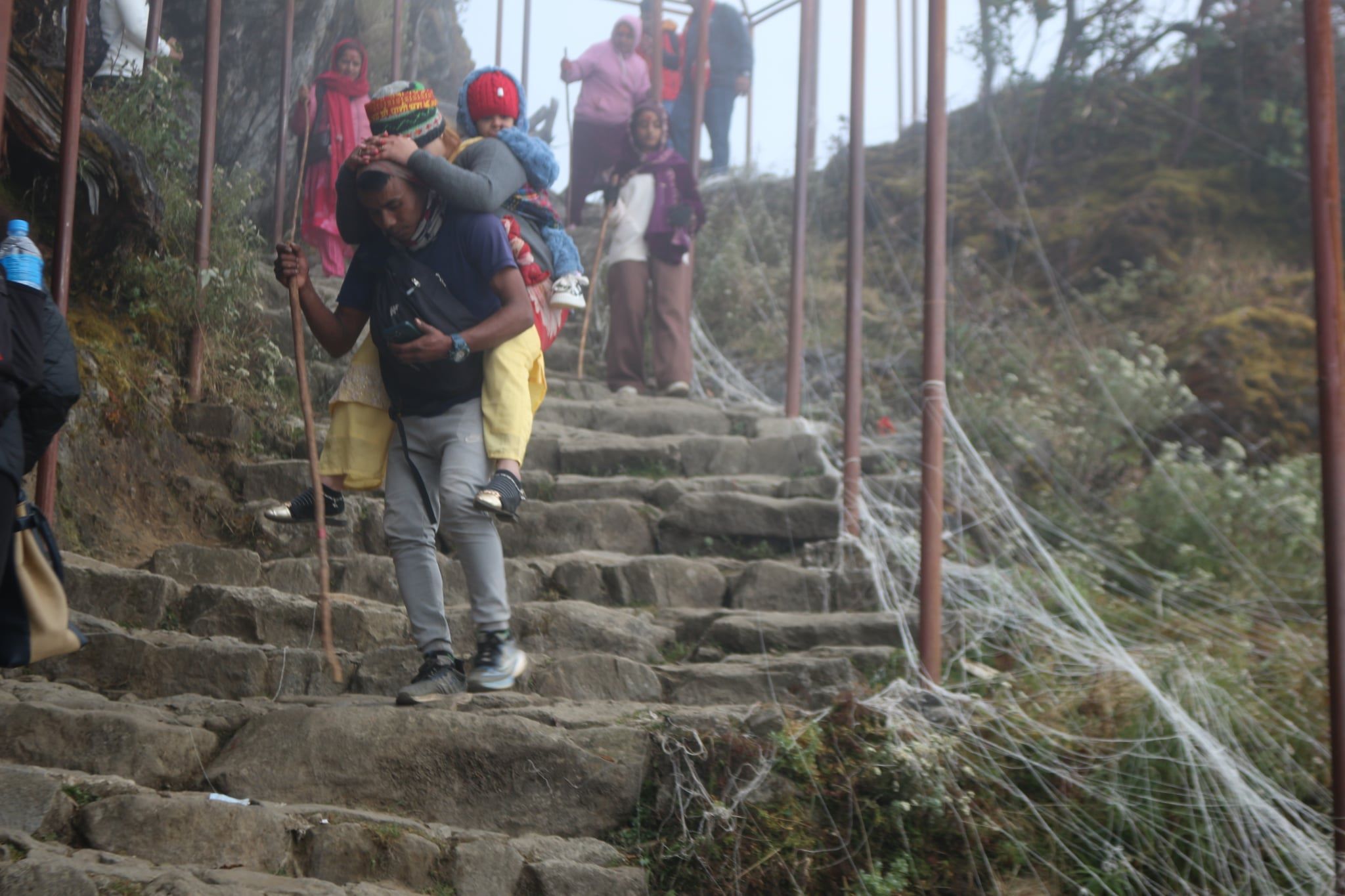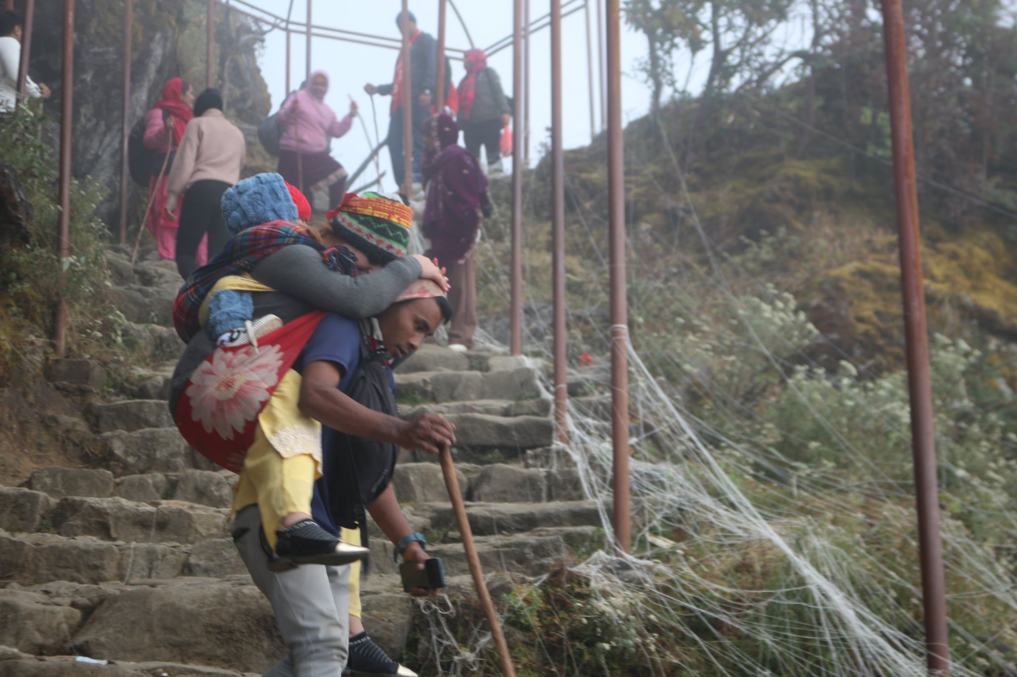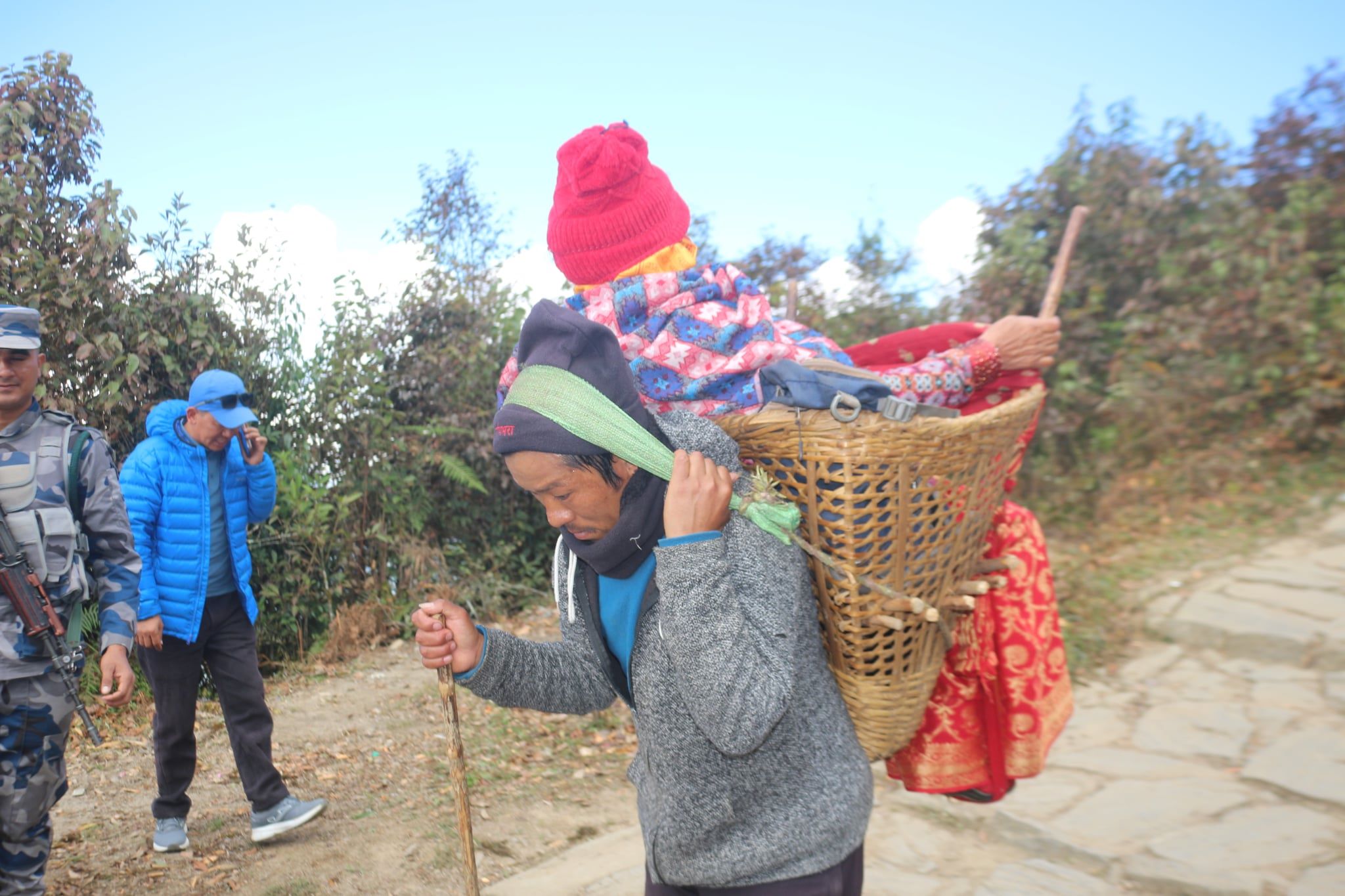 Porters carry visitors, especially children and elderly people who cannot walk, to Pathibhara.