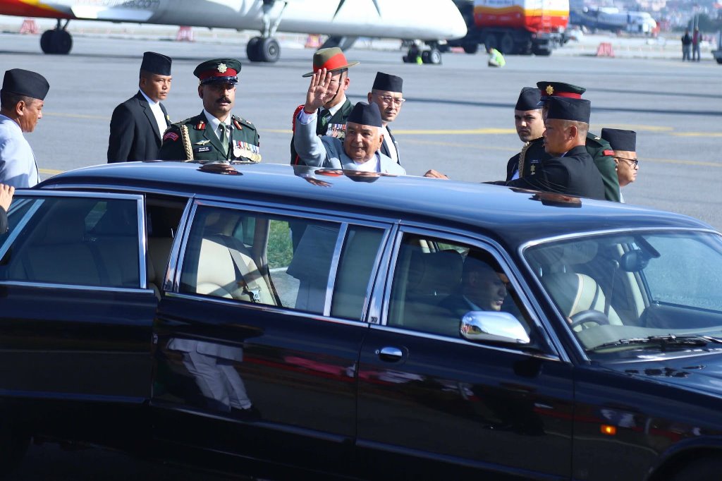 President Paudel was seen off at Tribhuvan International Airport by Vice President Ramsahay Prasad Yadav, Prime Minister Sushila Karki and Home Minister Om Prakash Aryal.