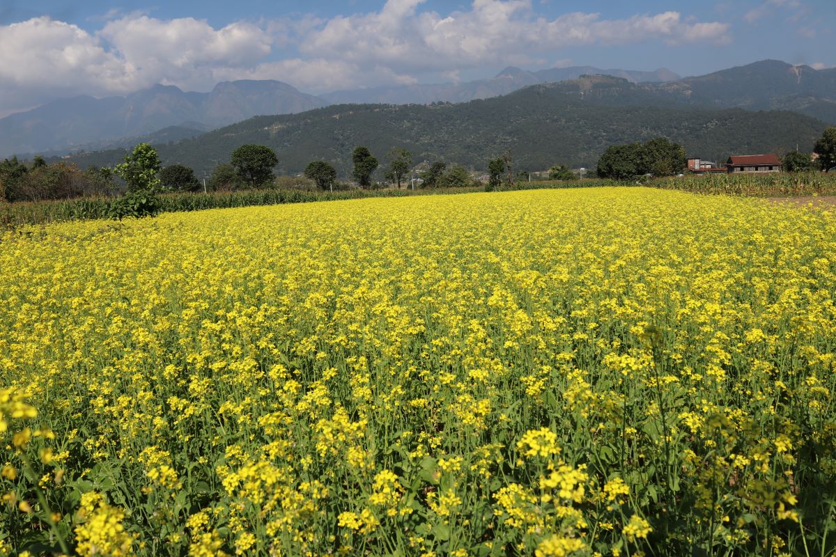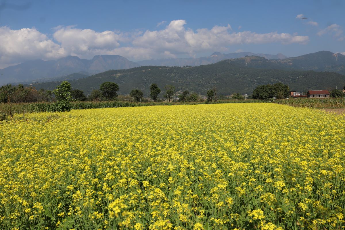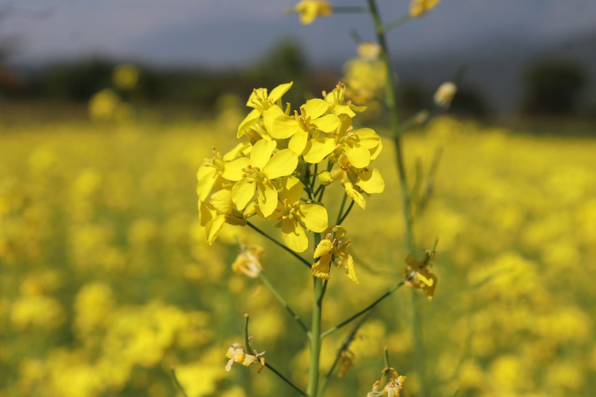 The widened blue sky, yellow blossoms all over the fields, and bees covering the plants make the environment exultant. The village is now enchanted by the scent of mustard flowers along with the cool breeze.