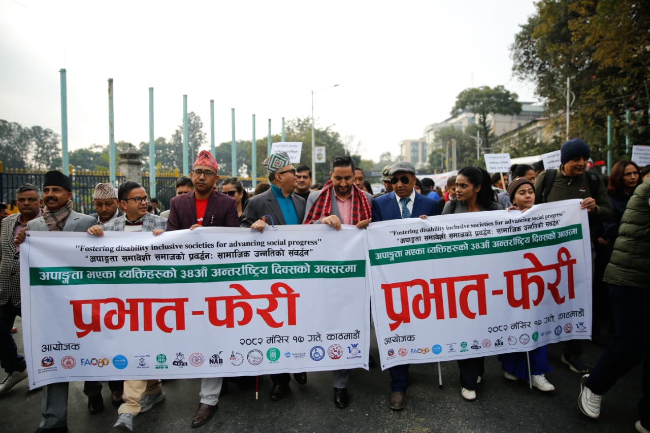 A morning procession has been organized here today under the leadership of Minister for Communications and Information Technology Jagadish Kharel on the occasion of the 34th International Day of Persons with Disabilities (PWDs).