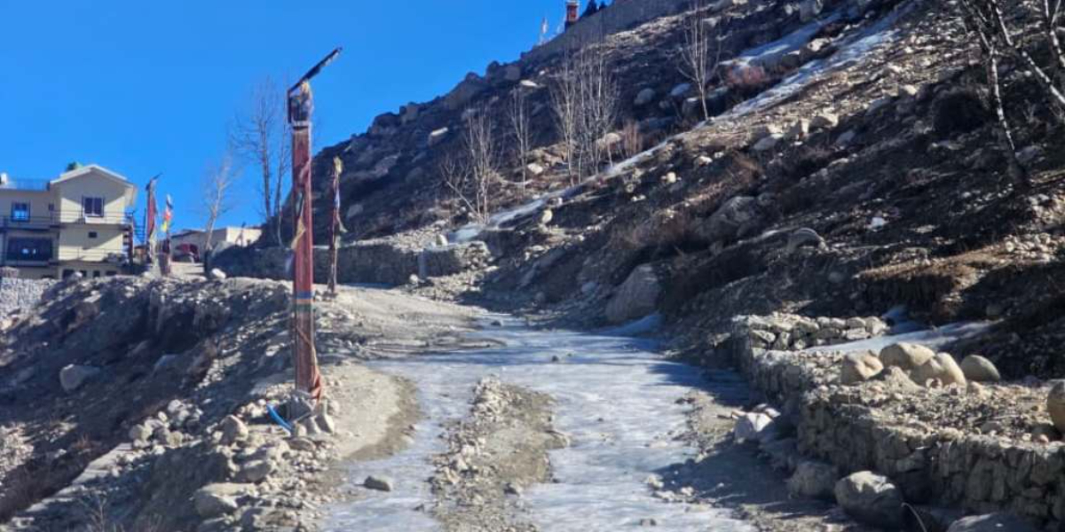 By Hari Krishna Sharma, Muktinath(Mustang), Dec 6: As the temperature drops, water has frozen on the roads, rivers, and drinking water taps in Upper Mustang.