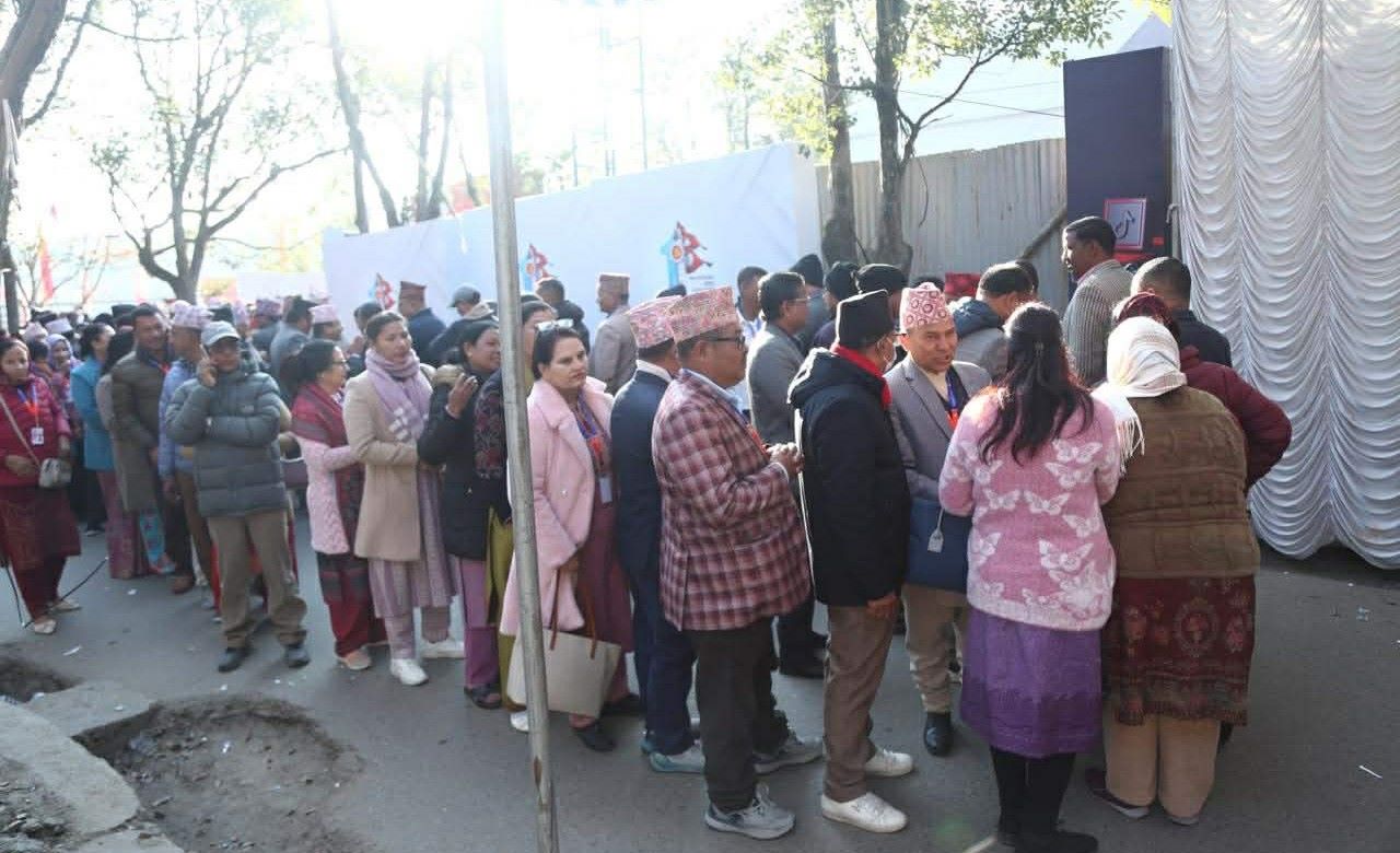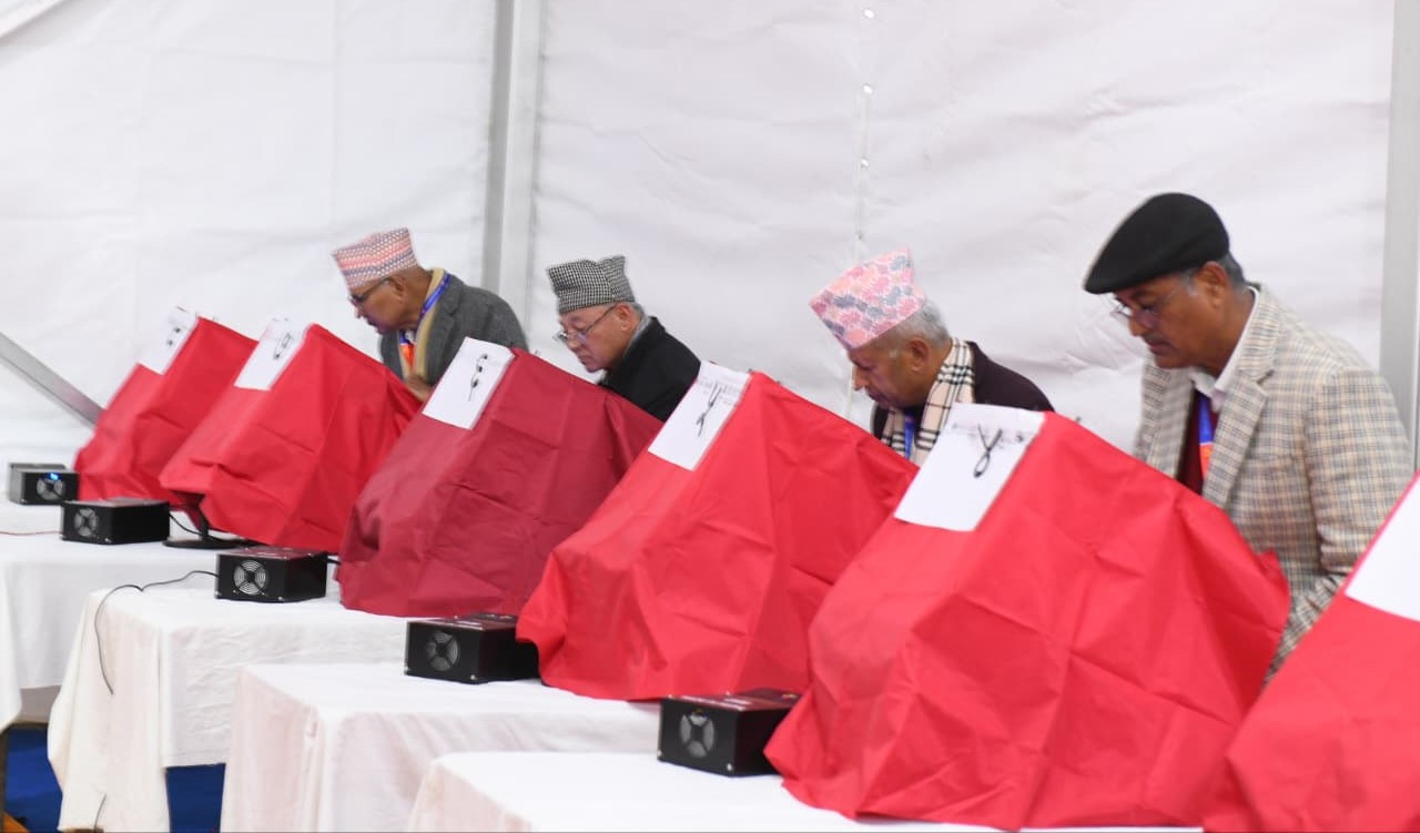 The voting process began at 9 am after candidates for the chairperson, KP Sharma Oli and Ishwor Pokharel, cast their votes using electronic voting machines this morning.