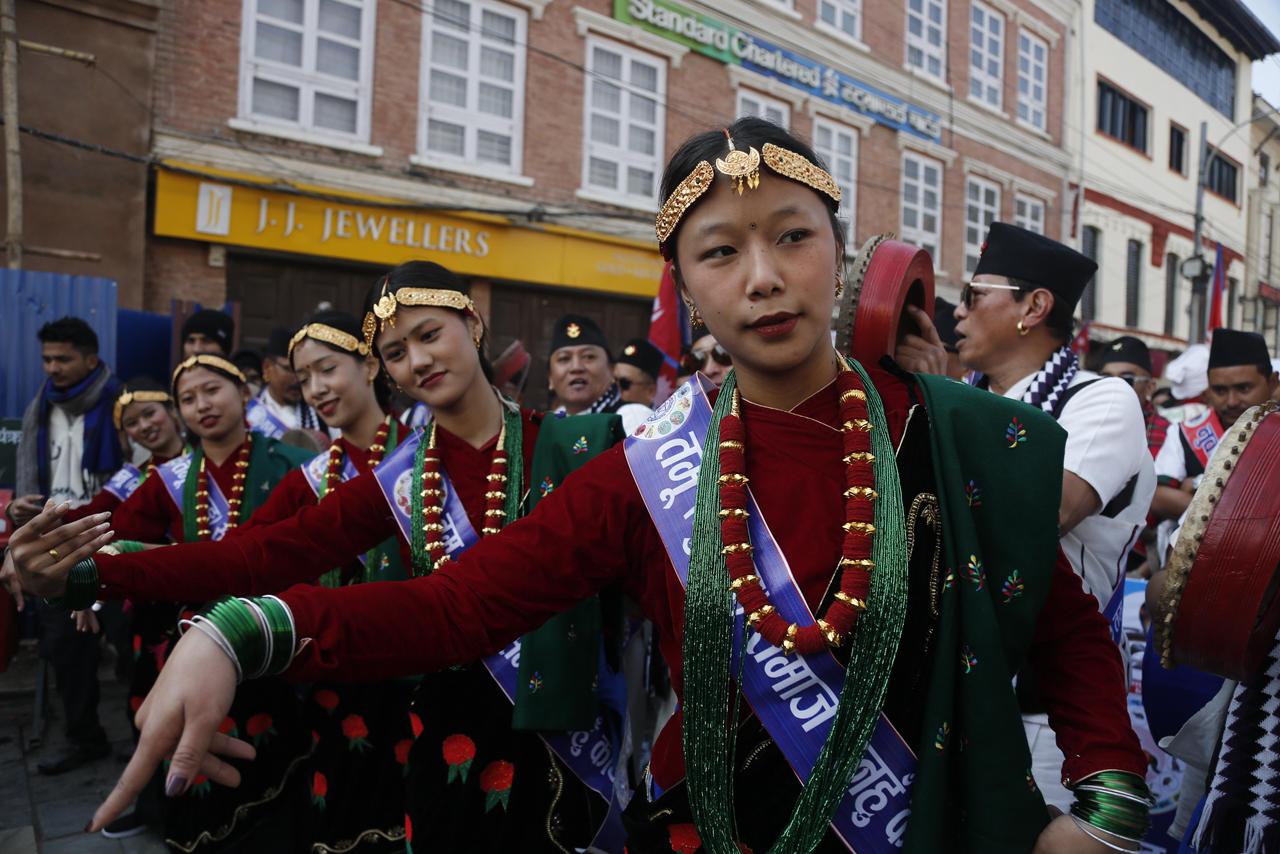 They are presented in Tundikhel attired in folk dress, exchanging greeting and feasting on traditional cuisine.