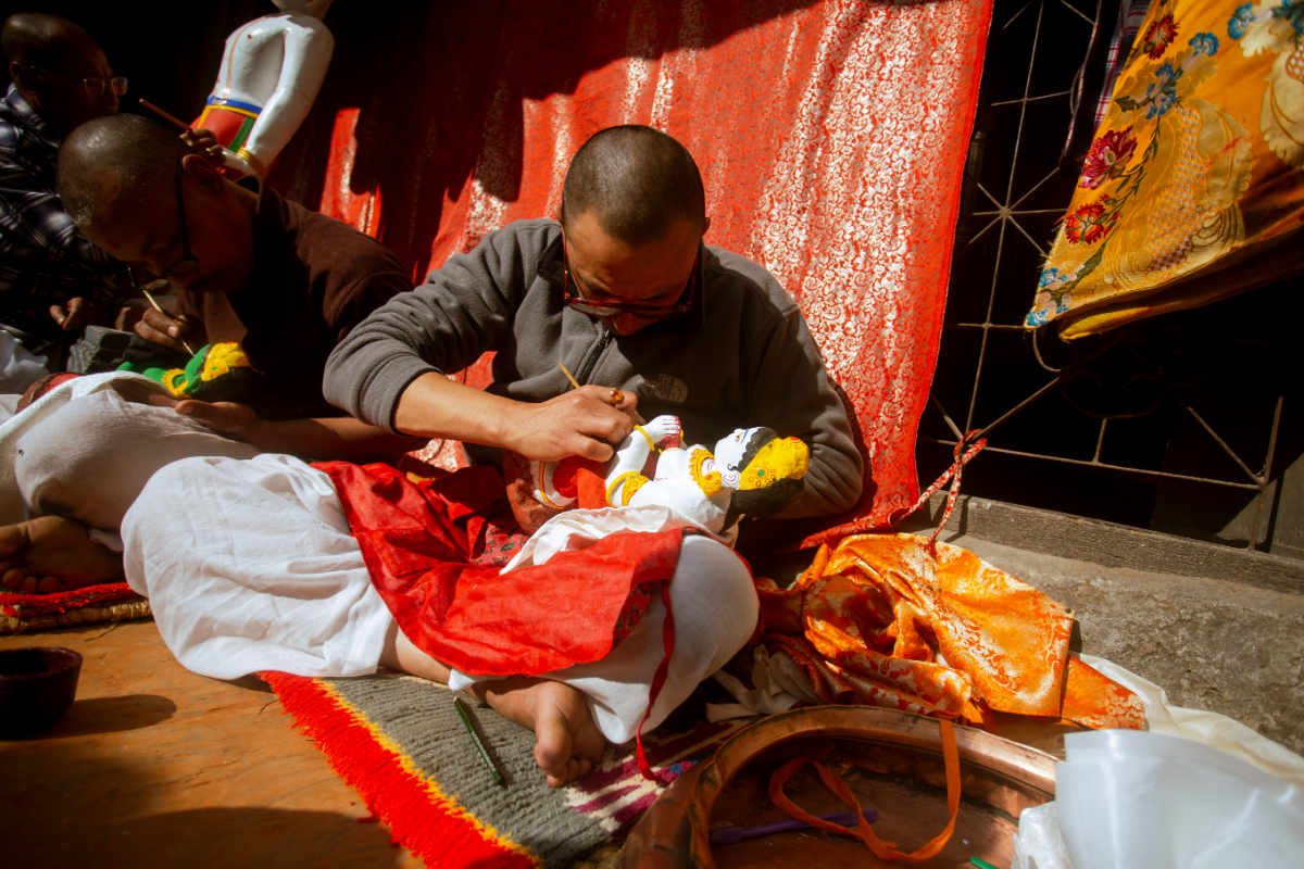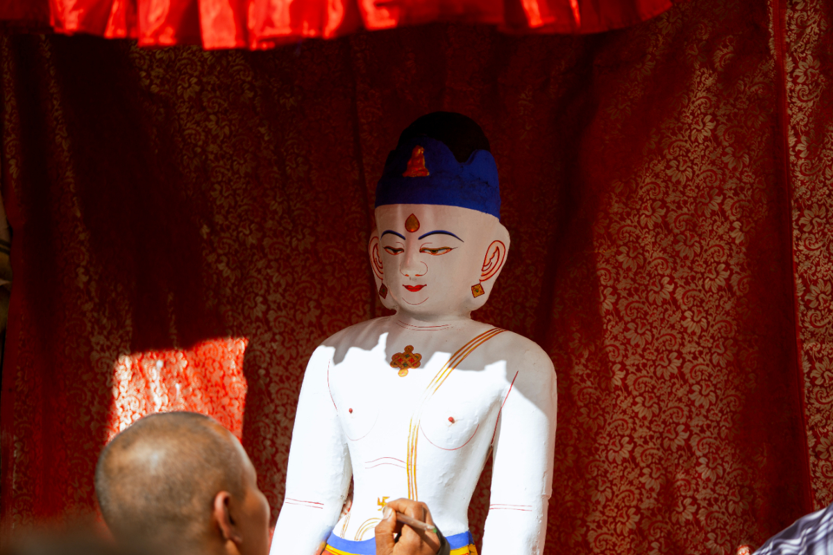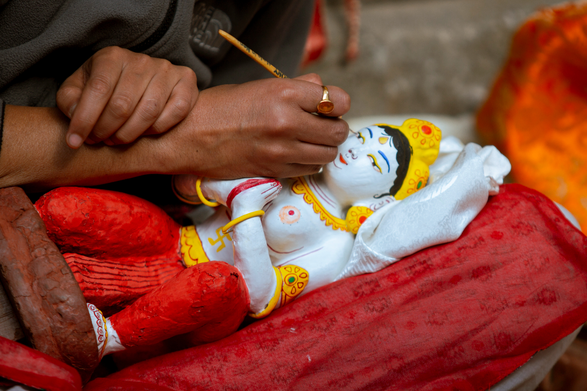 After the holy bath, the sculpture is painted and decorated.