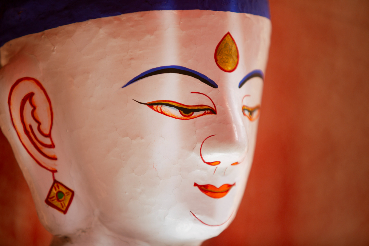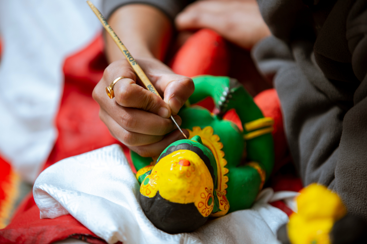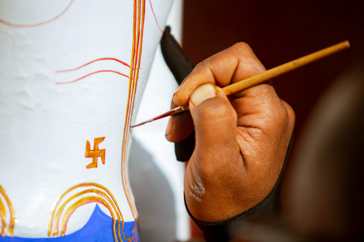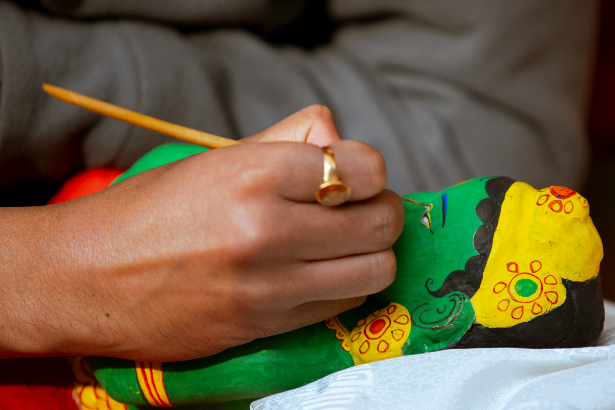 After the holy bath, the sculpture is painted and decorated.