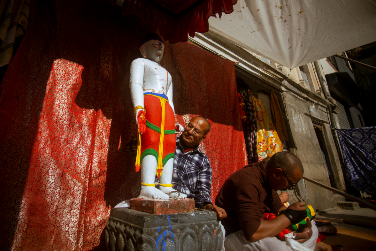 According to Chitrakar, the retouch on the sculpture is done after the holy bath, as some disruption is caused, and the paint gets washed from the sculpture.