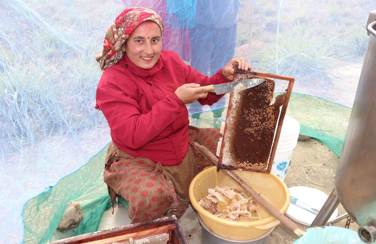 Ghimire, who currently has 16 beehives, has been making money by preparing and selling honey.