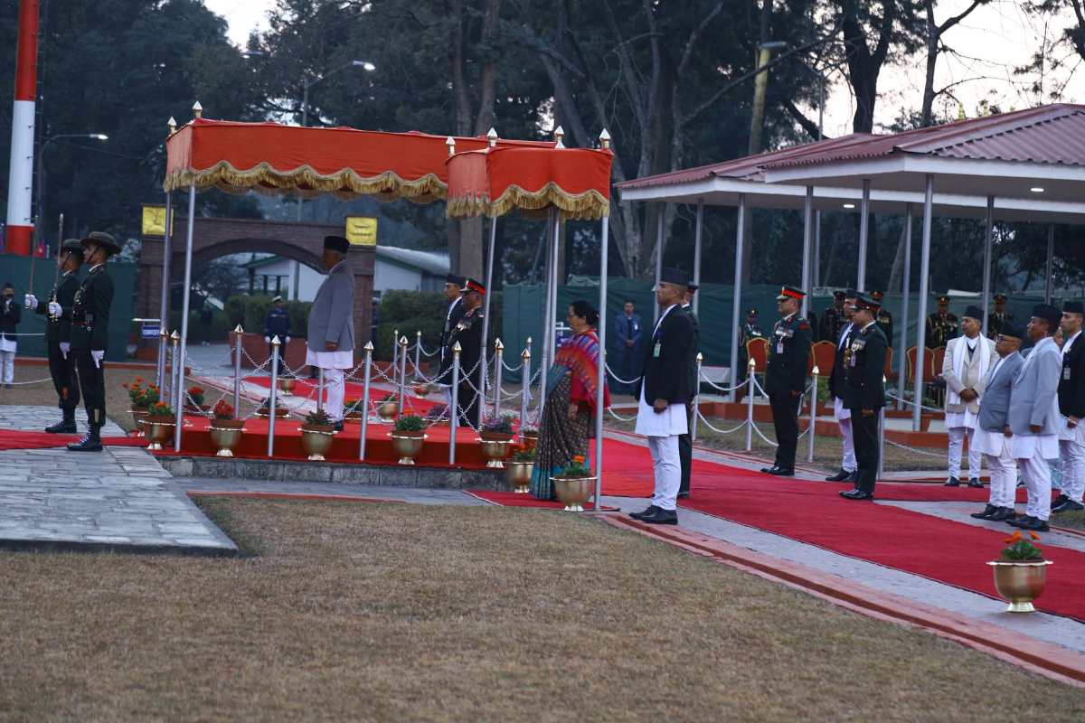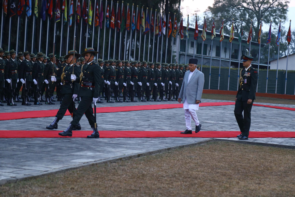 A contingent of Nepali Army accorded a guard of honour to the Head of the State.