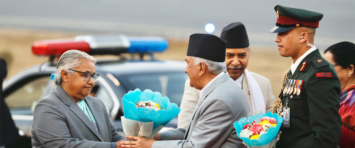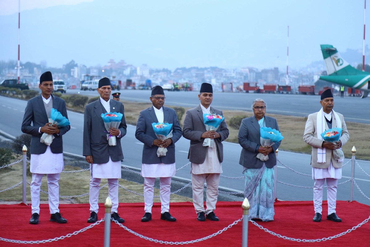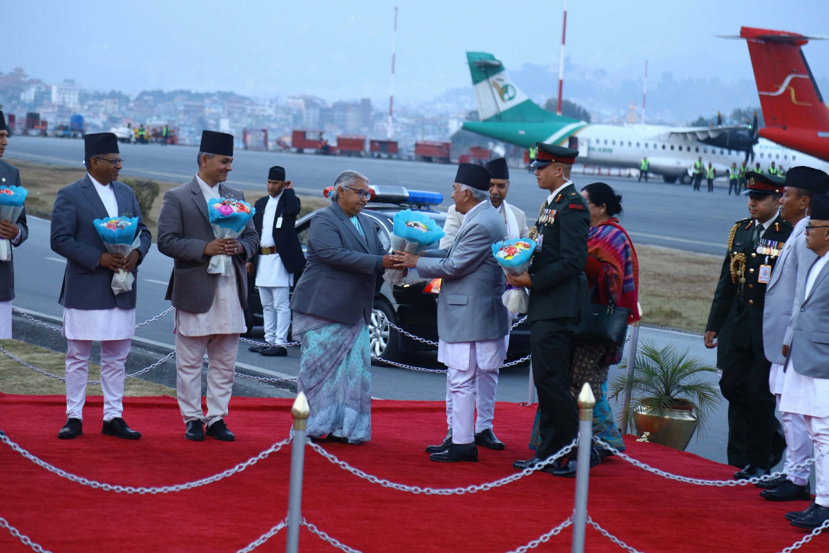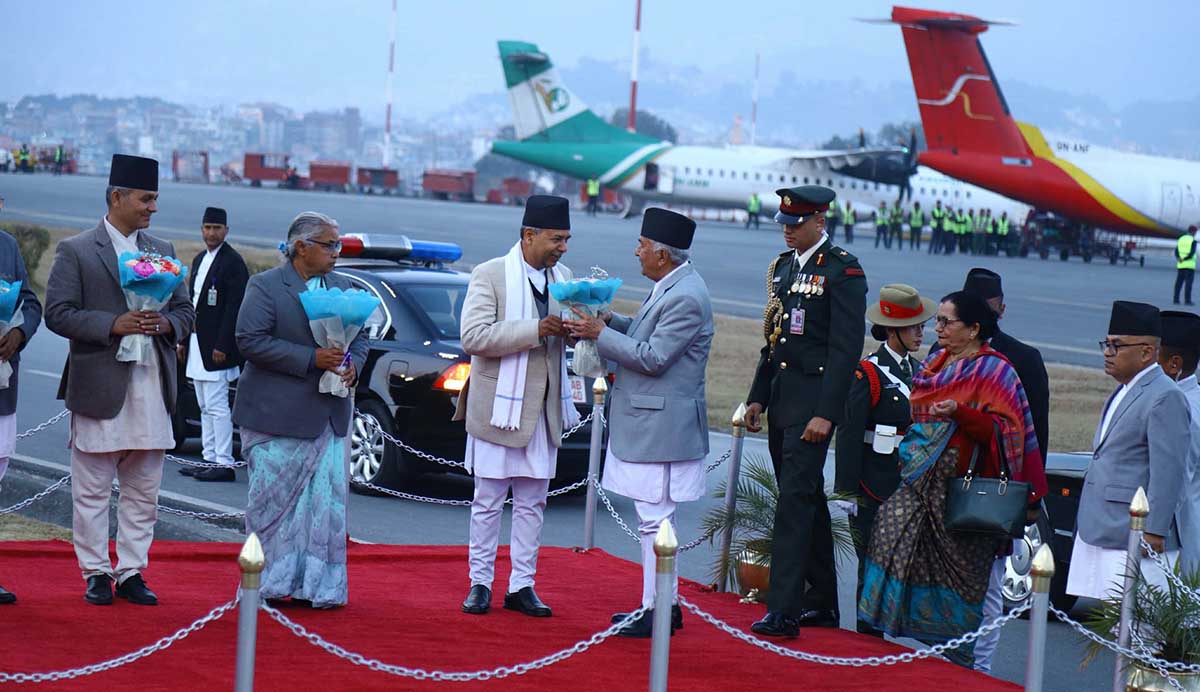 Vice President Ramsahay Prasad Yadav, Prime Minister Sushila Karki, ministers and the chiefs of the security bodies welcomed President Paudel at the VVIP Lounge of Tribhuvan International Airport.
