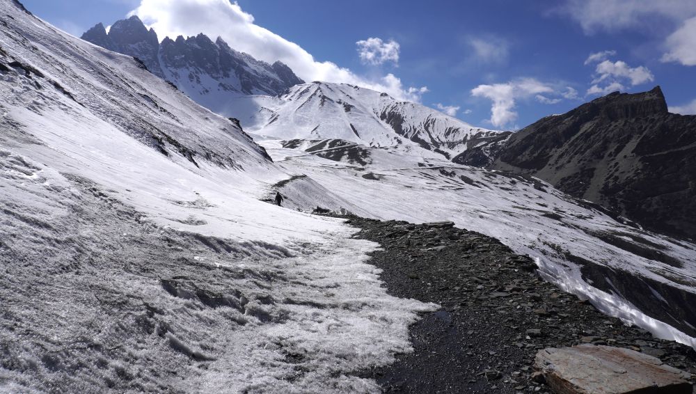Mustang, Feb 25: A section of the Mustang-Dolpa road covered in snow in Varagung Mukti Chhetra Rural Municipality-5 of Mustang. The Mustang-Dolpa road has been completely blocked due to snow covering the road following the snowfall on November 6, 2025.