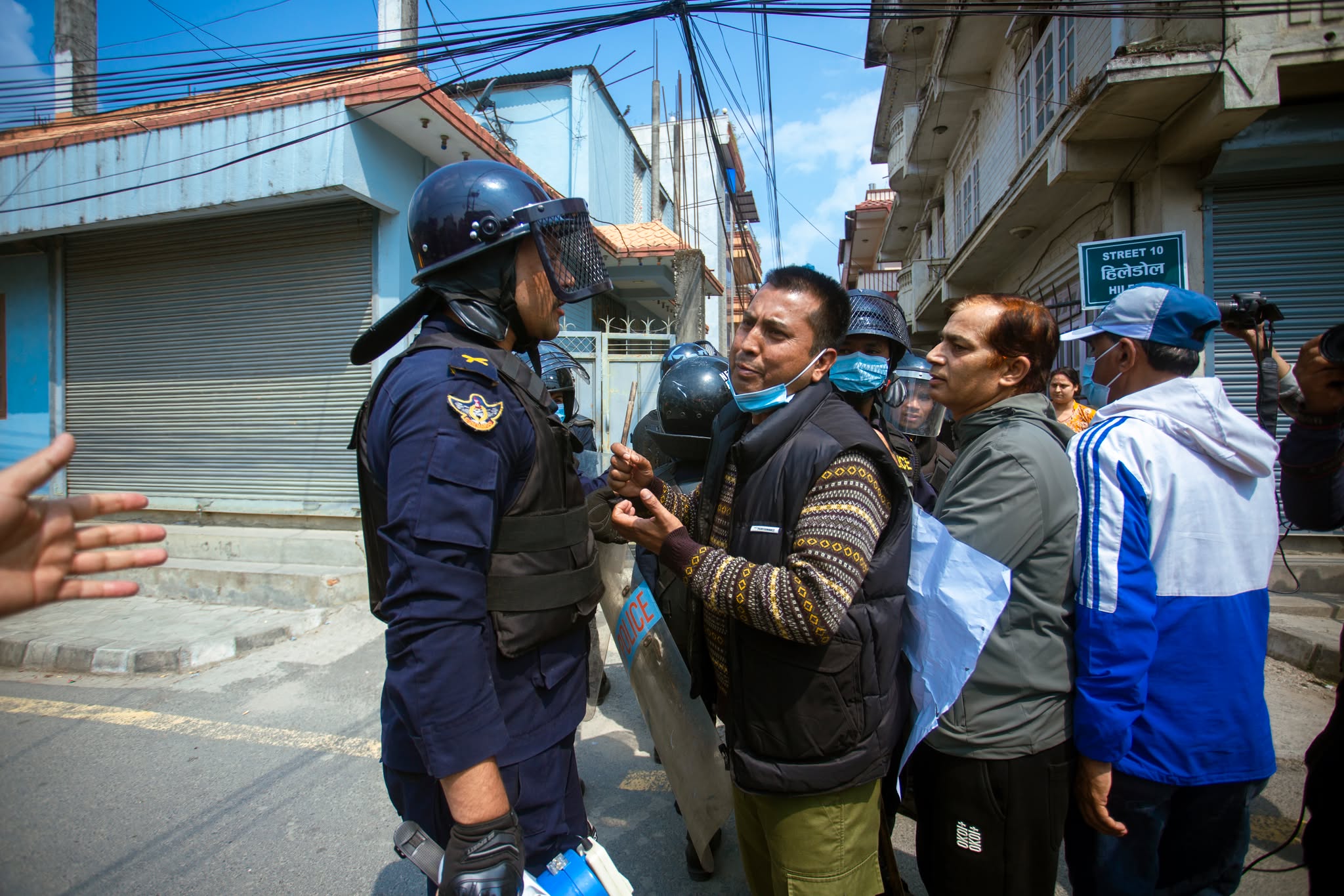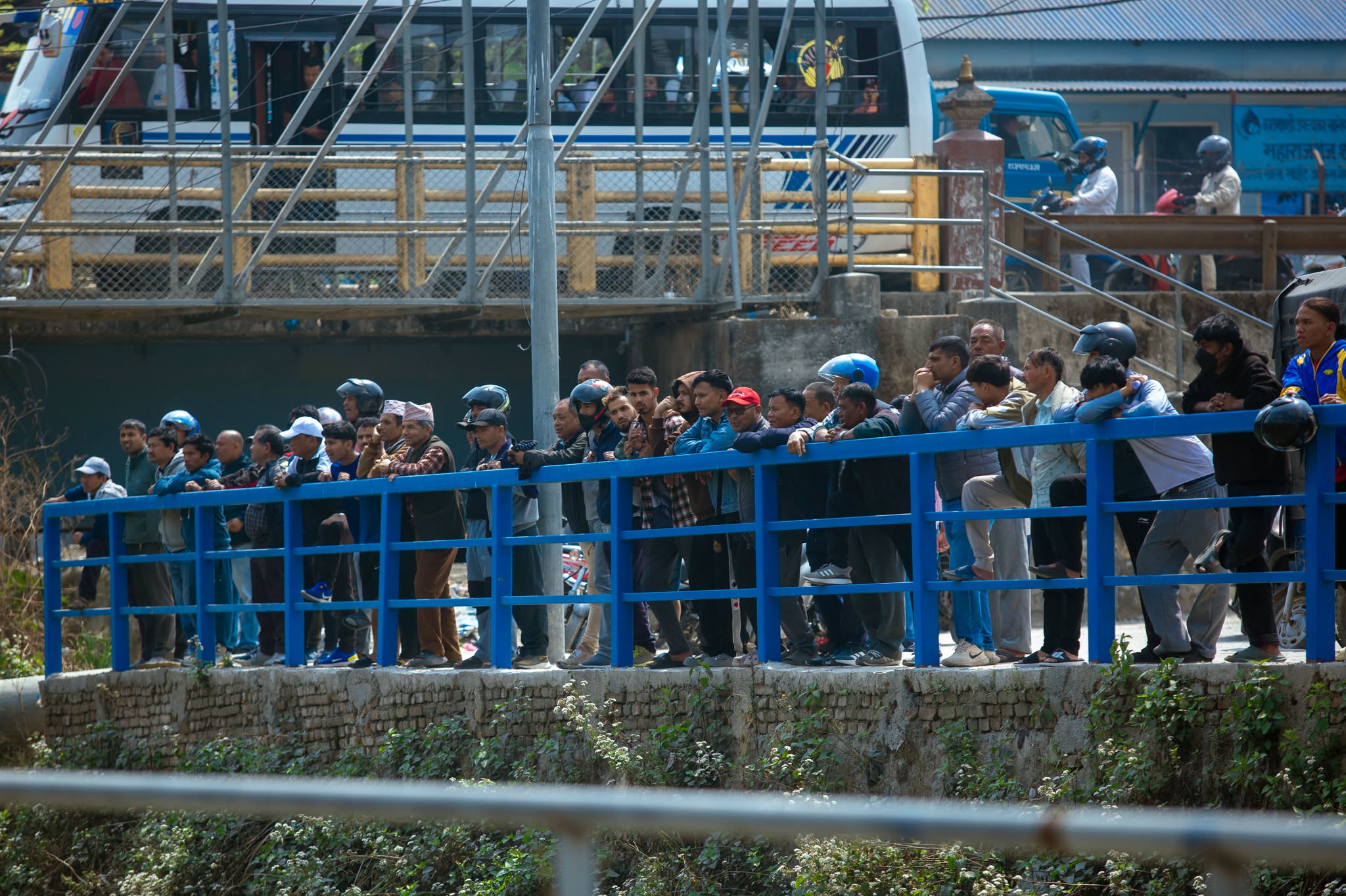 The Valley Development Authority demolished the illegally constructed huts and structures built across the river using a dozer on Thursday morning after previous requests to remove them were ignored. Photos: Manoj Ratna Shahi/TRN