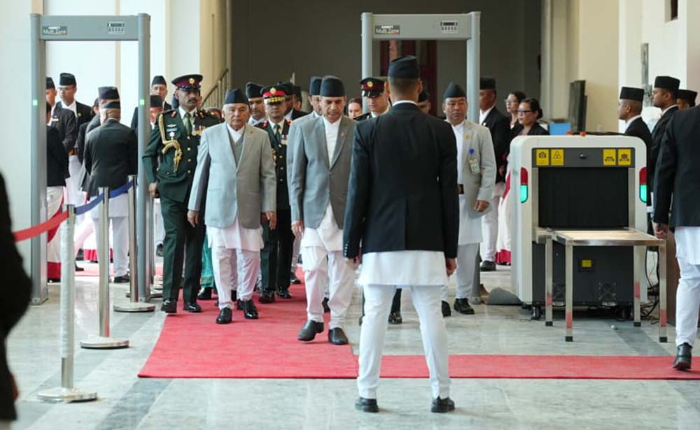 By TRN Online, Kathamdnu, April 10: President Ramchandra Paudel has addressed the joint session of both houses of the Federal Parliament at the multi-purpose meeting hall of Singha Durbar-based Federal Parliament Building.