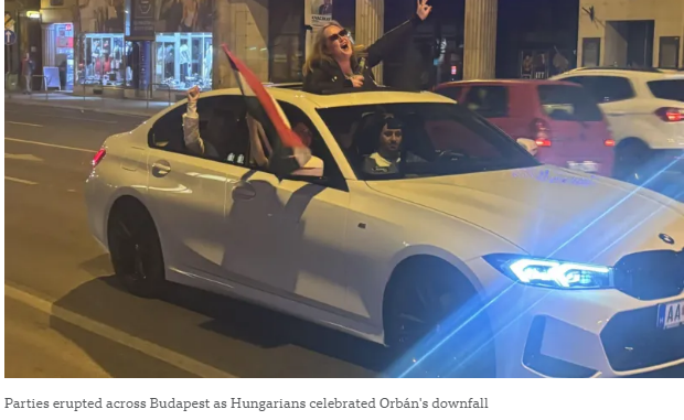 Magyar had been telling his supporters to prepare for a change of regime, and now they had it the parties truly started and the champagne flowed. Cars blared their horns across Budapest, women waving Hungarian flags through open sun roofs.
