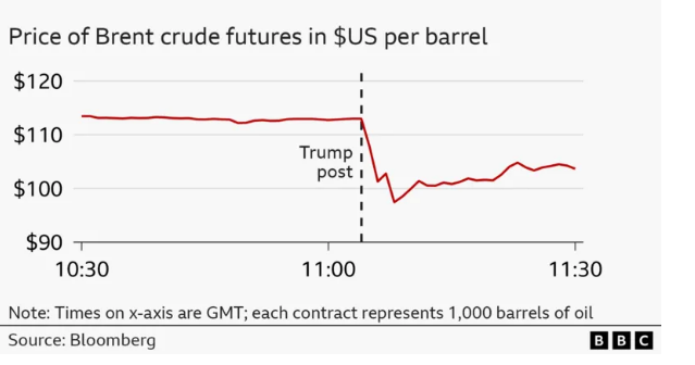 Oil traders reacted to this news that the conflict could end much sooner than expected by selling oil, with the price plunging by around 25%.